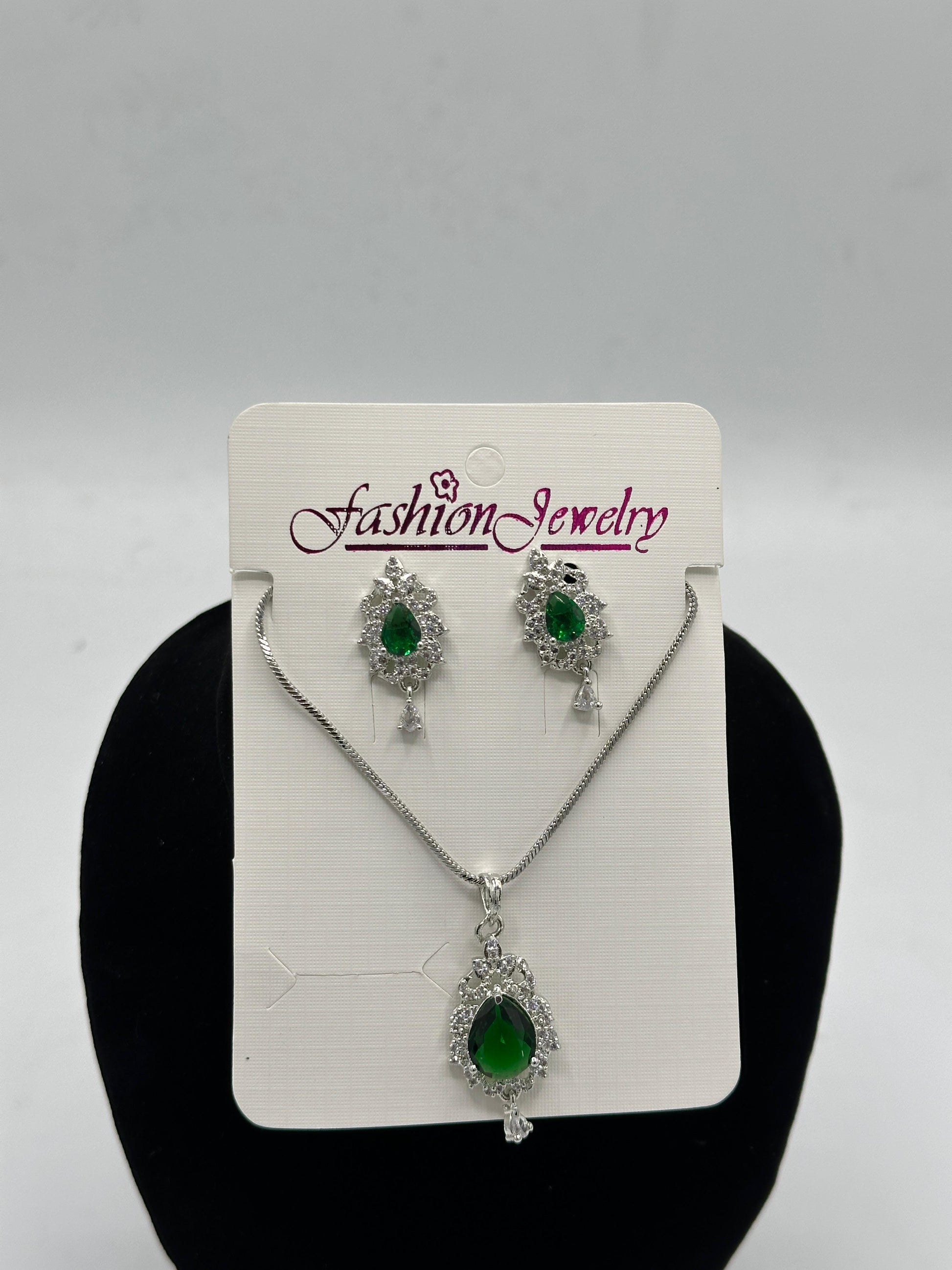Add a touch of sophistication and vibrant color to your look with this beautiful jewelry set featuring a stunning necklace and matching earrings adorned with dazzling emerald accents ππΏ.